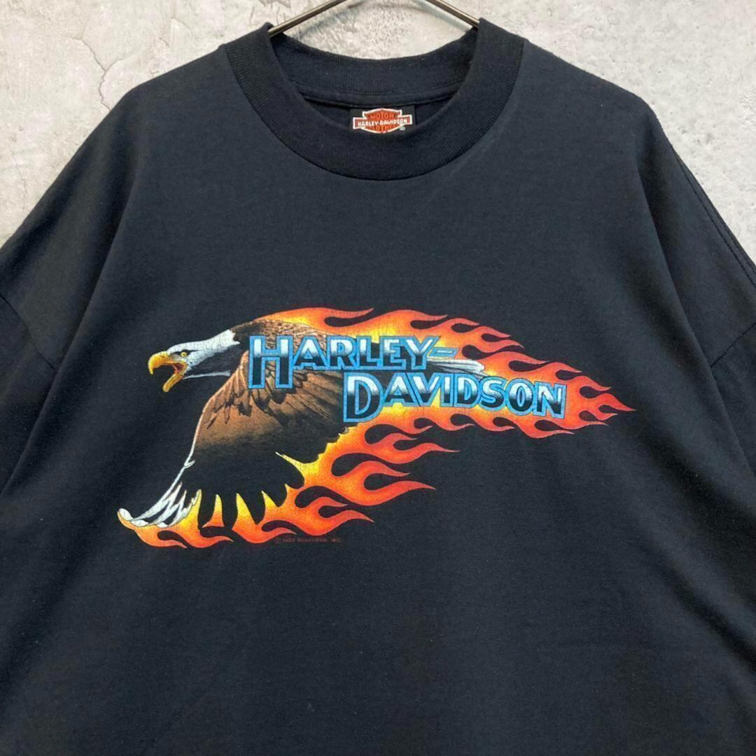 80s US古着 ハーレーダビッドソン ファイヤー イーグル 両面プリント 半袖 Tシャツ