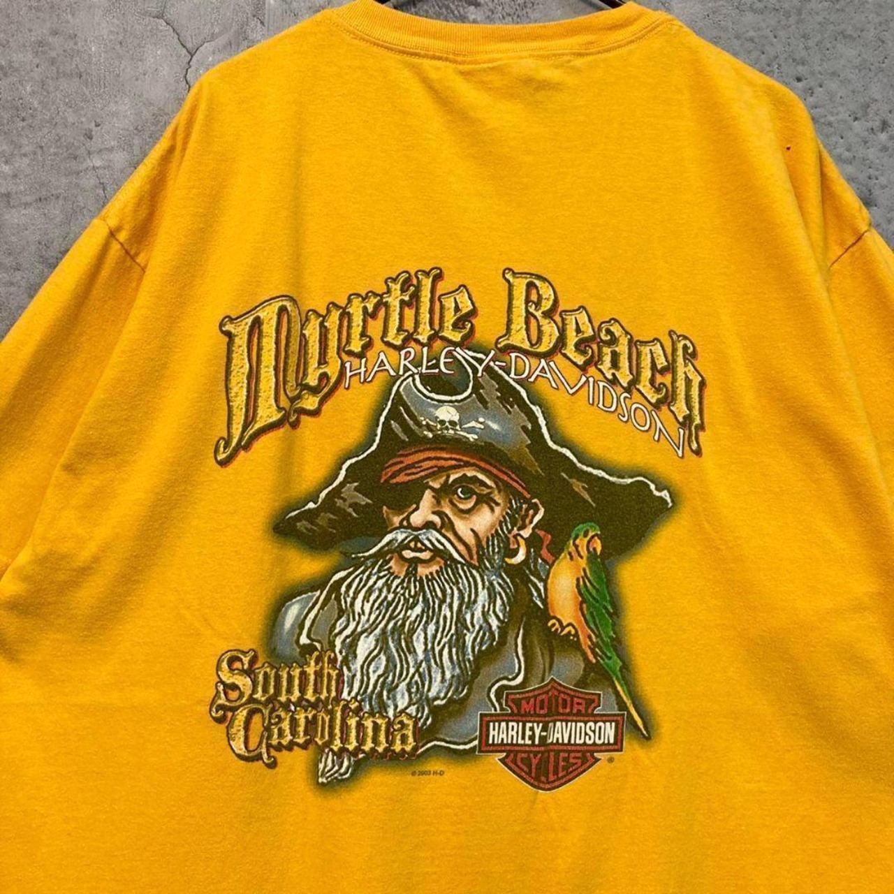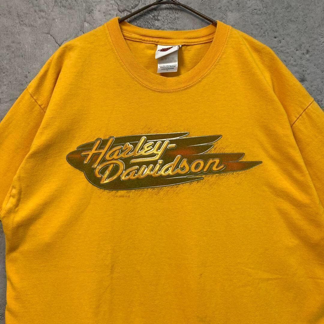 [used/USA vintage]Harley Davidson viking print yellow T-shirt