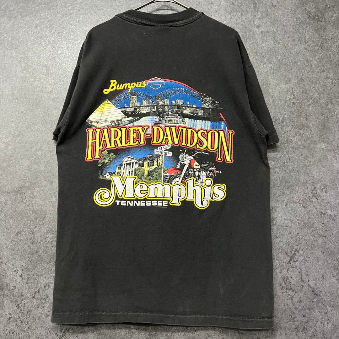 90s USA製 古着 ハーレーダビッドソン イーグル 両面プリント 半袖 Tシャツ
