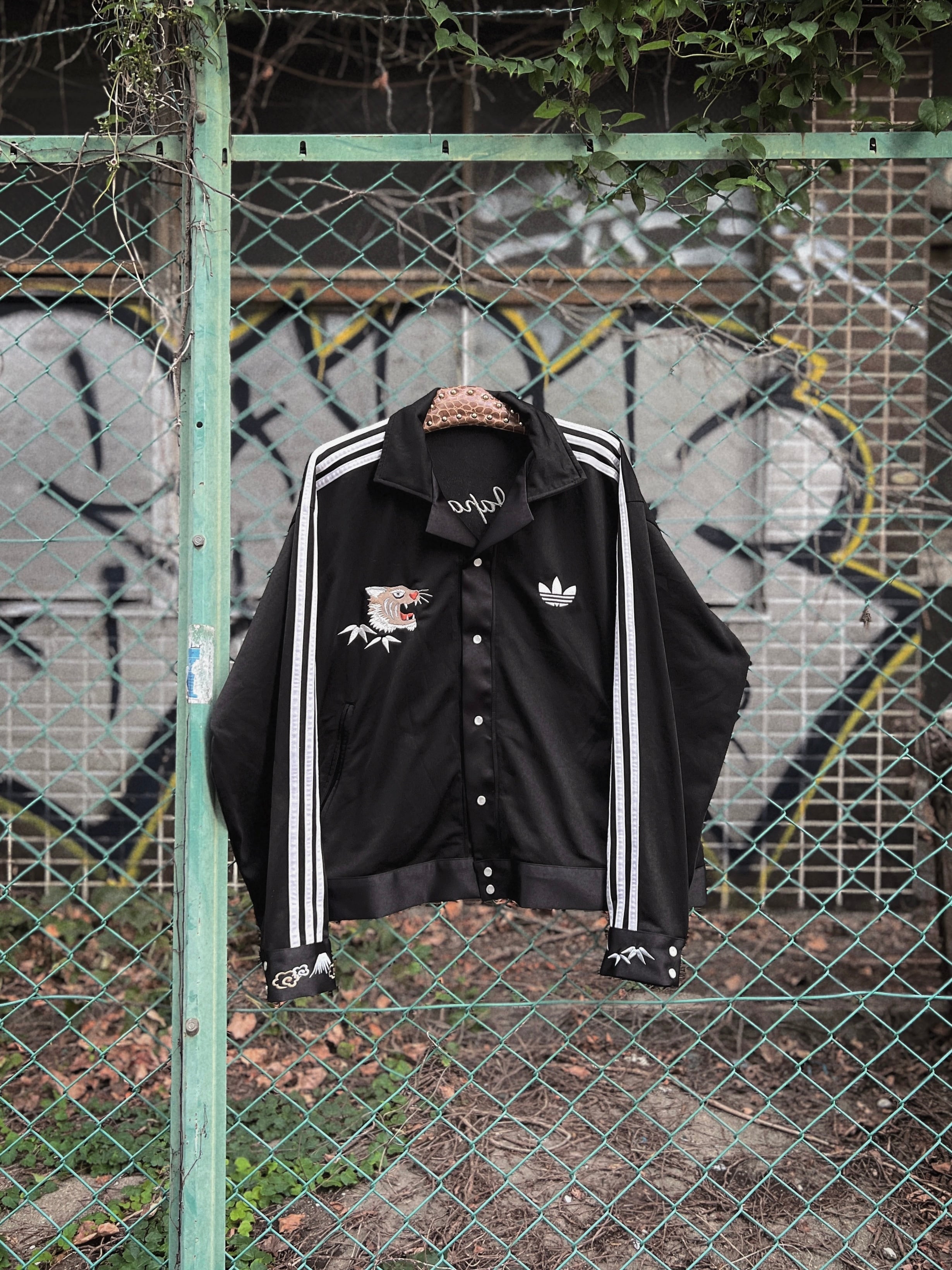 [maggoo remake products] 90s euro vintage adidas “Souvenir” open collar track jacket – White Tiger