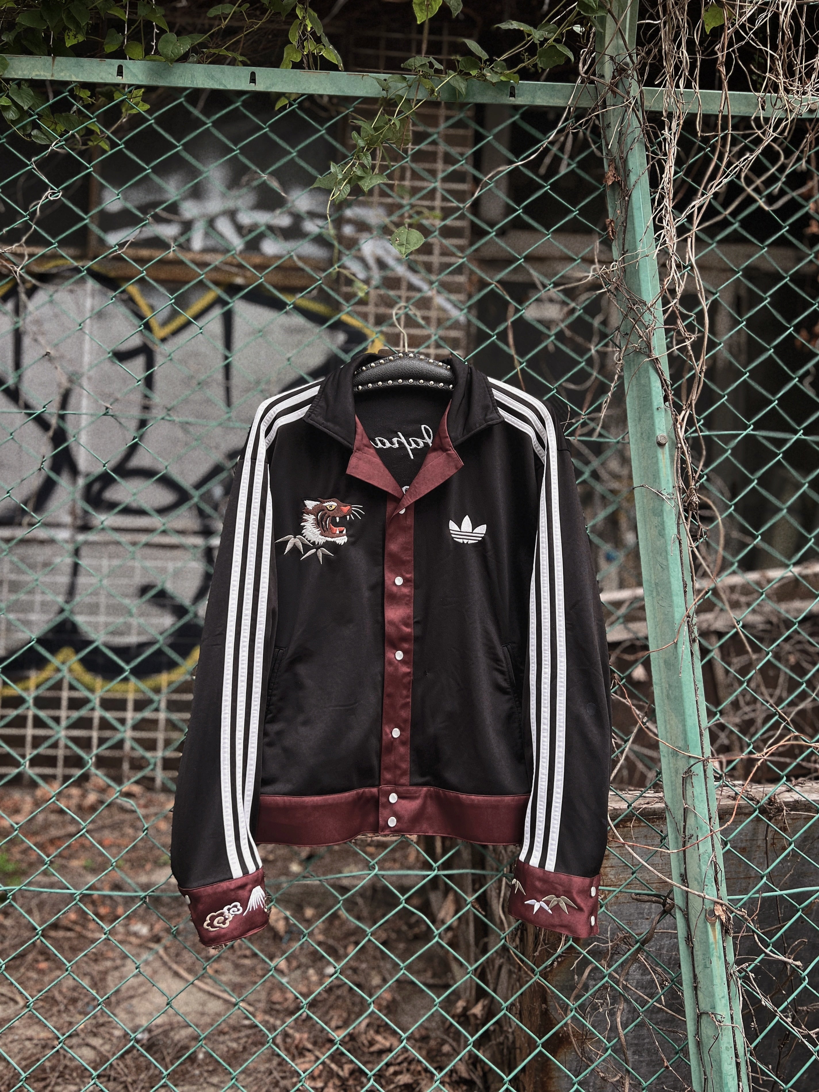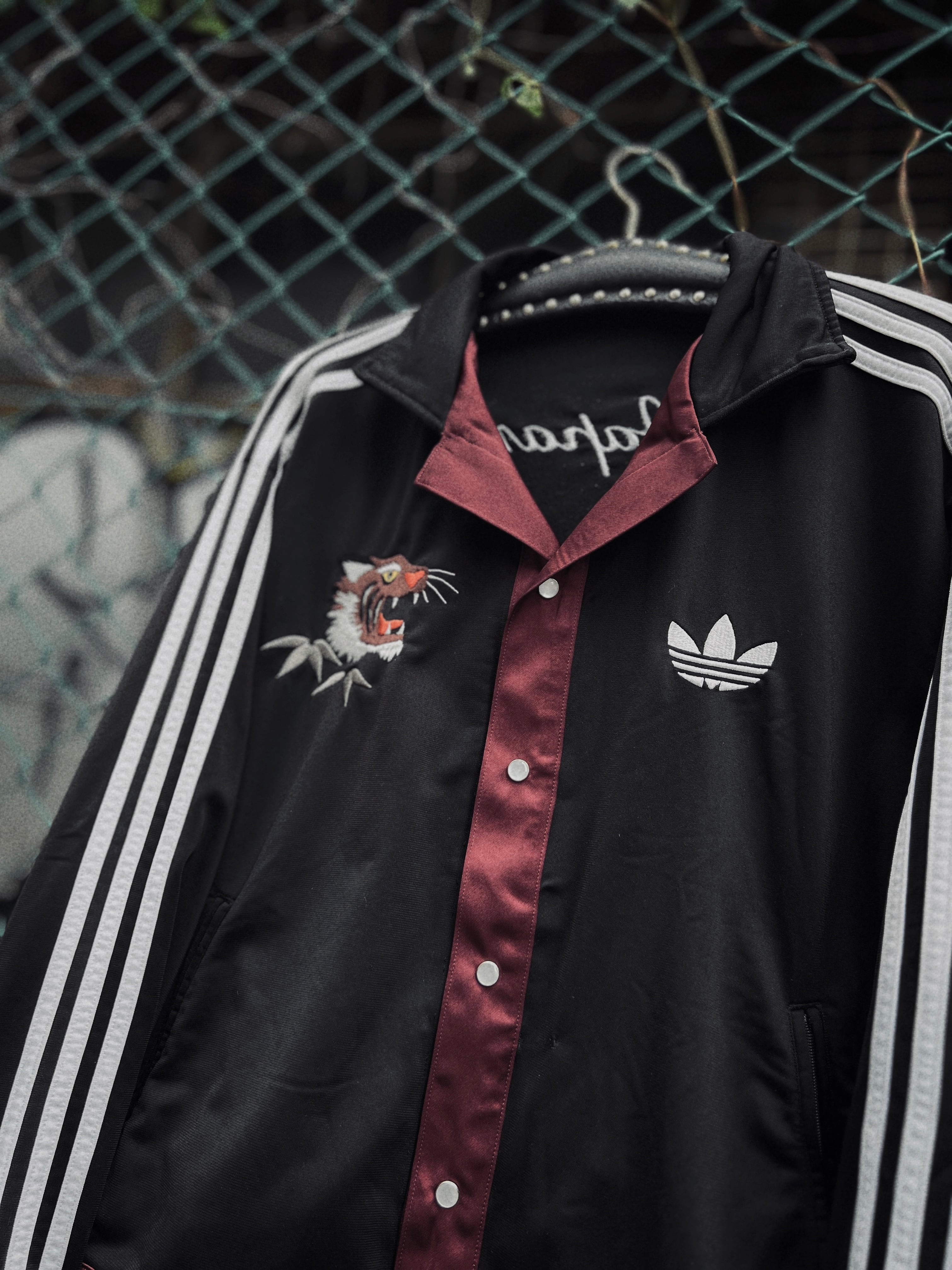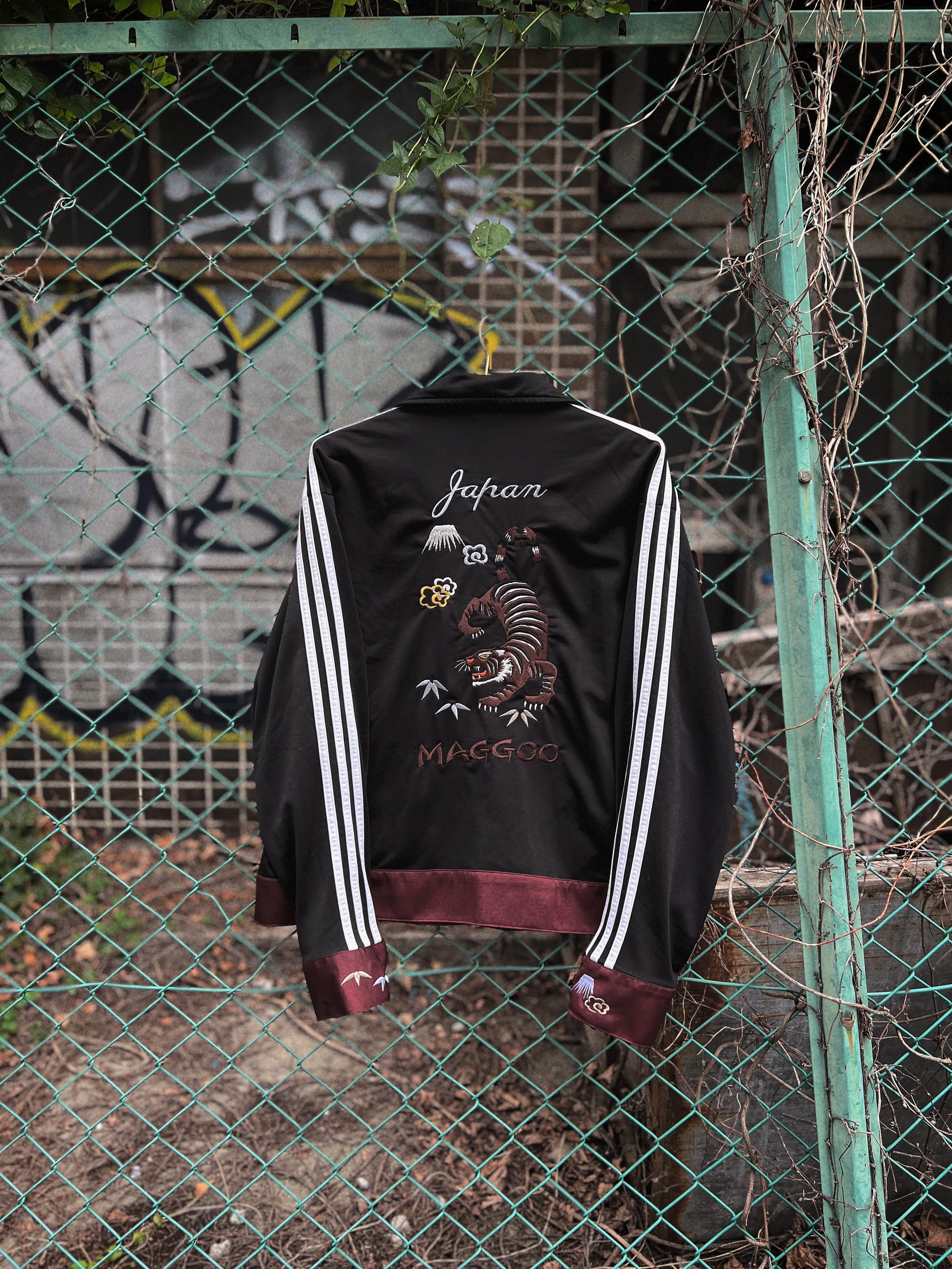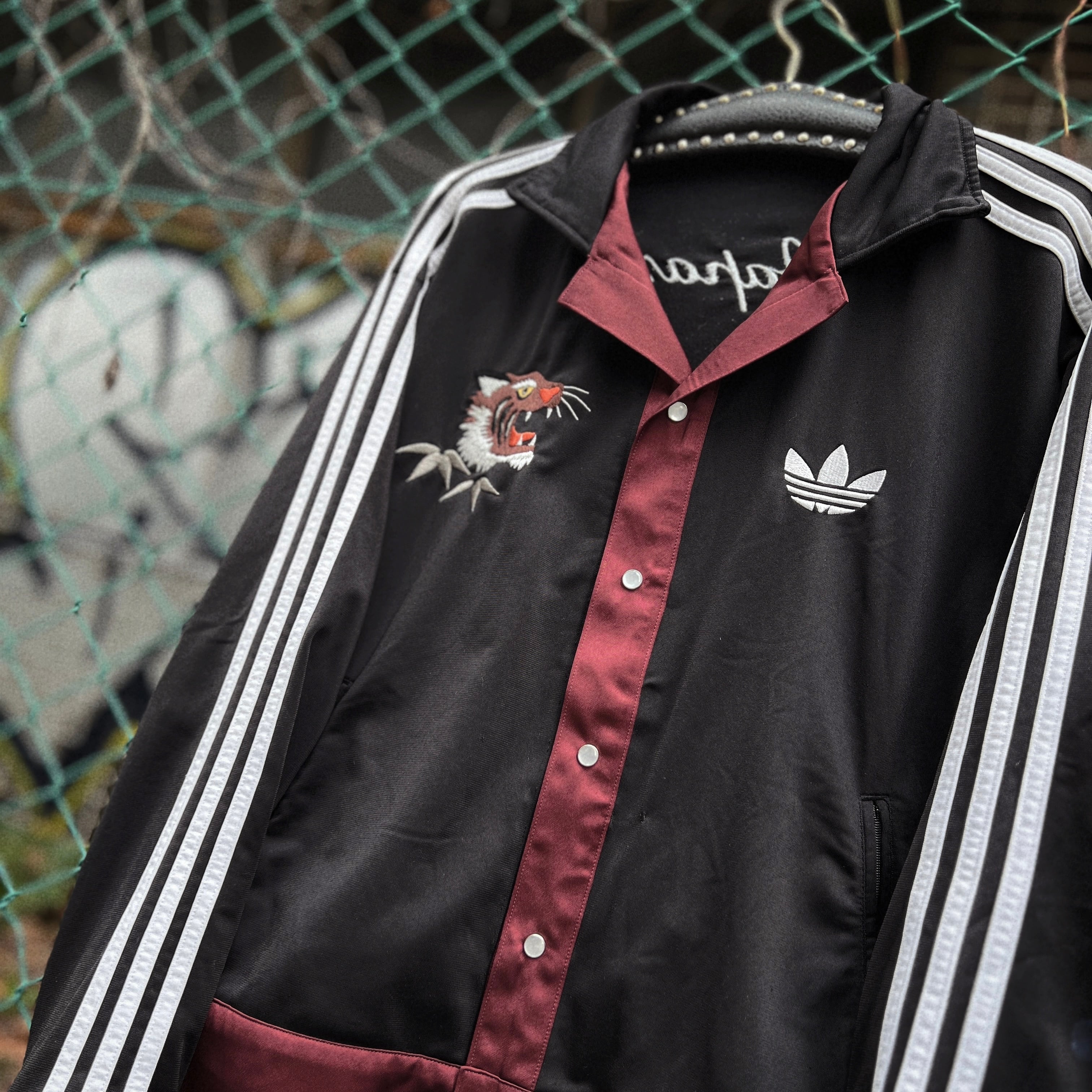 [maggoo remake products] 90s euro adidas “Souvenir” open collar track jacket – Burgundy Tiger | Maggoo Vintage