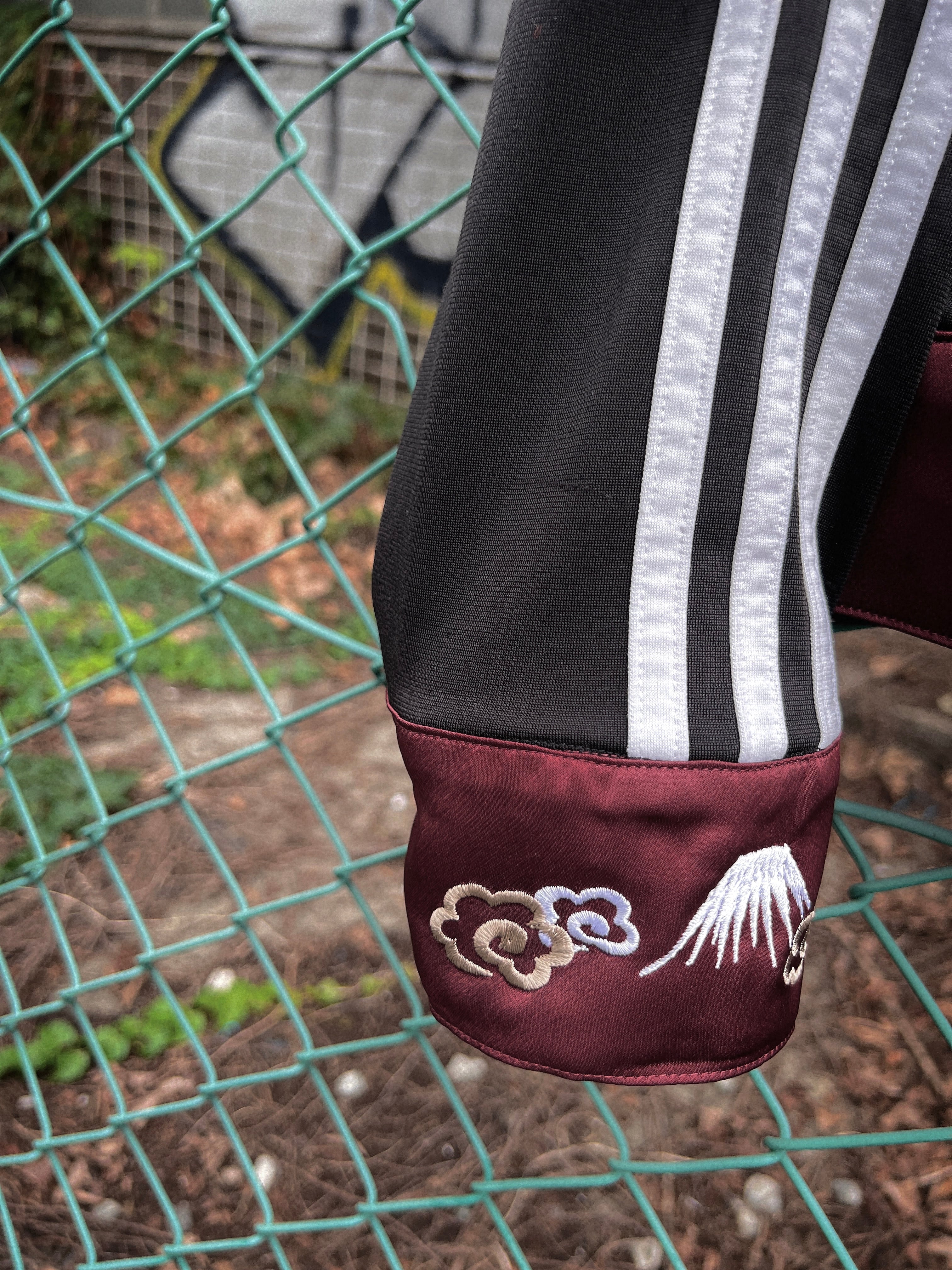 90s euro adidas “Souvenir” open collar track jacket – Burgundy Tiger