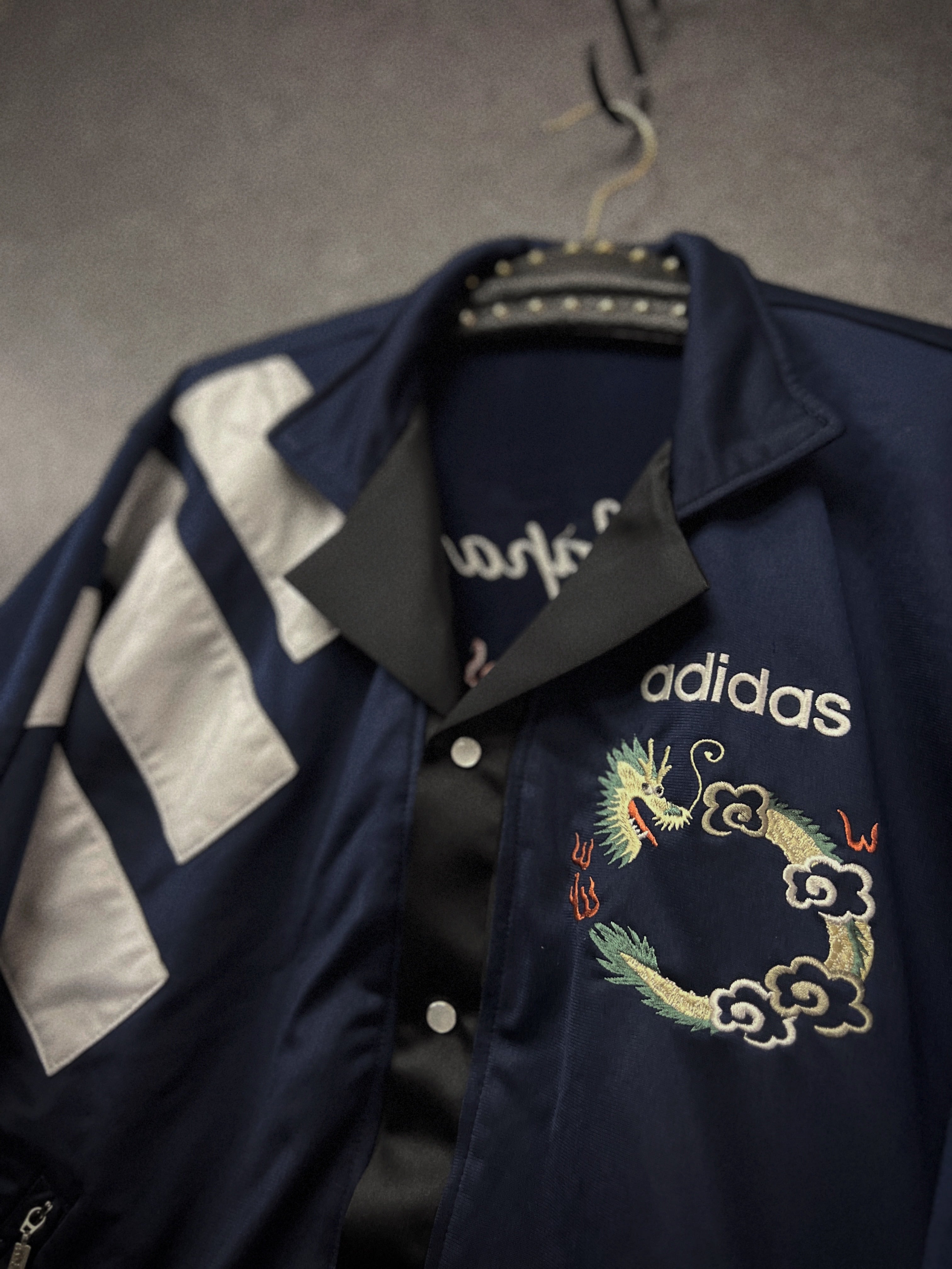 90s euro adidas “Souvenir” open collar track jacket – Dragon