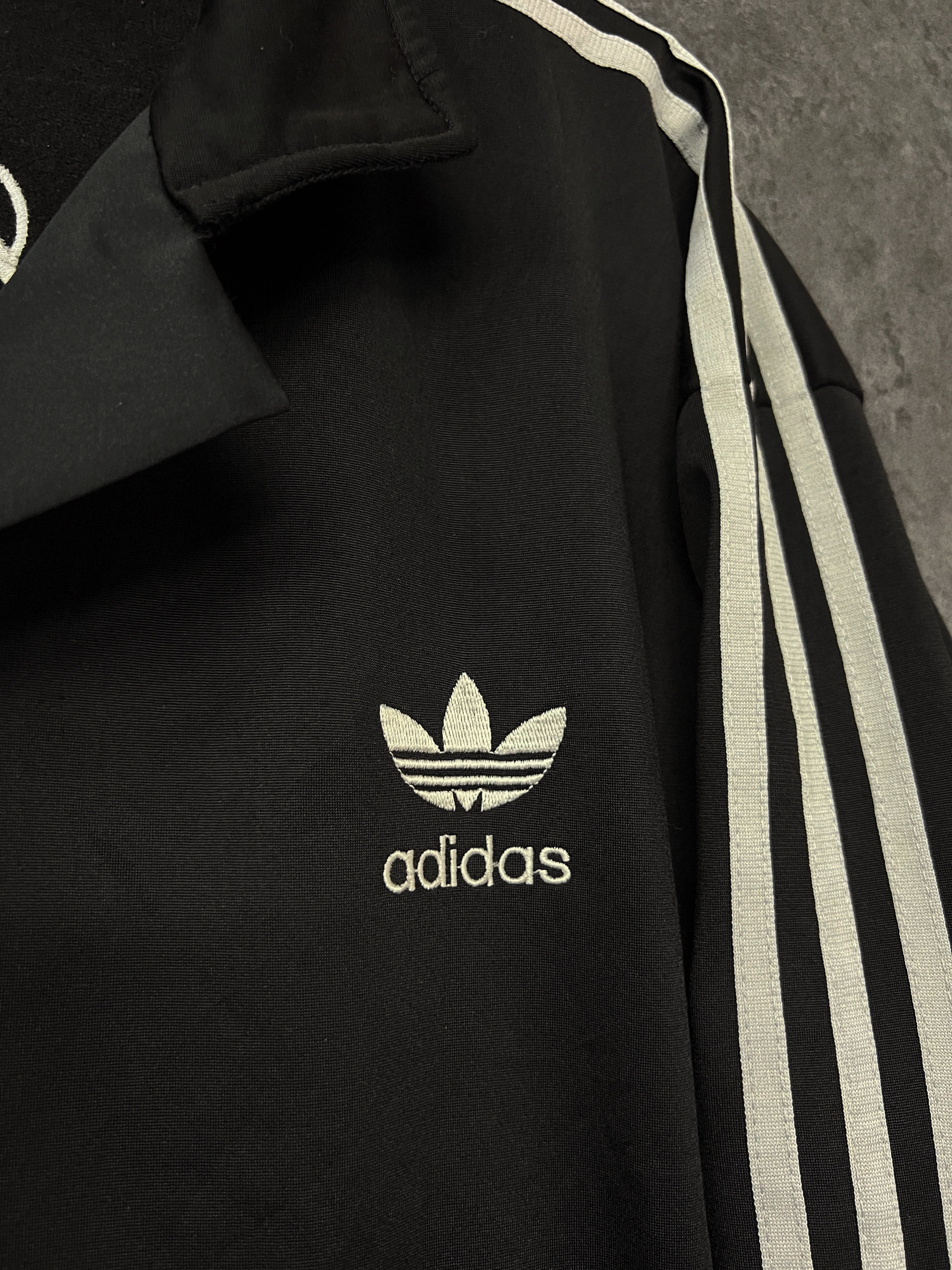 90s euro adidas “Souvenir” open collar track jacket – White Tiger