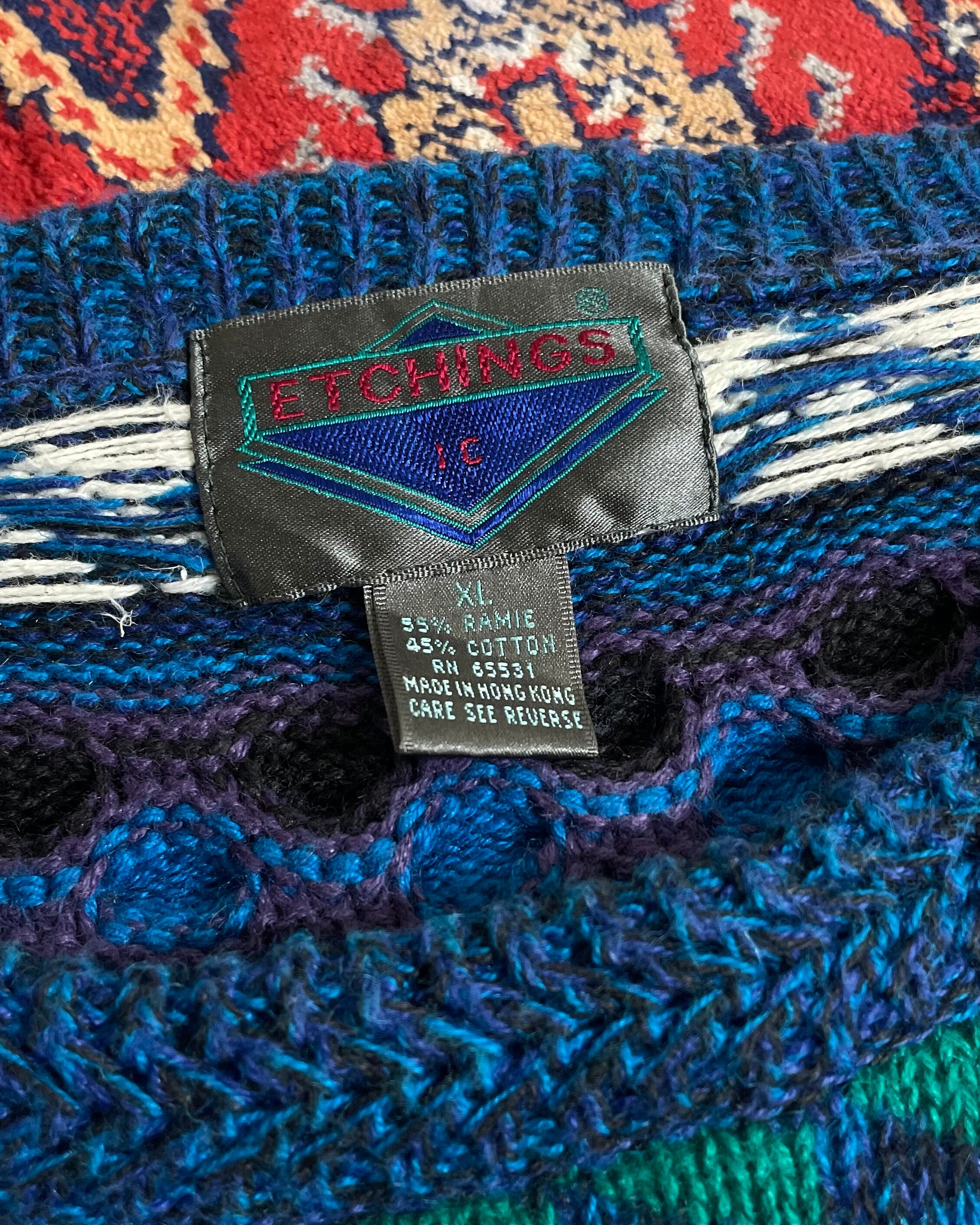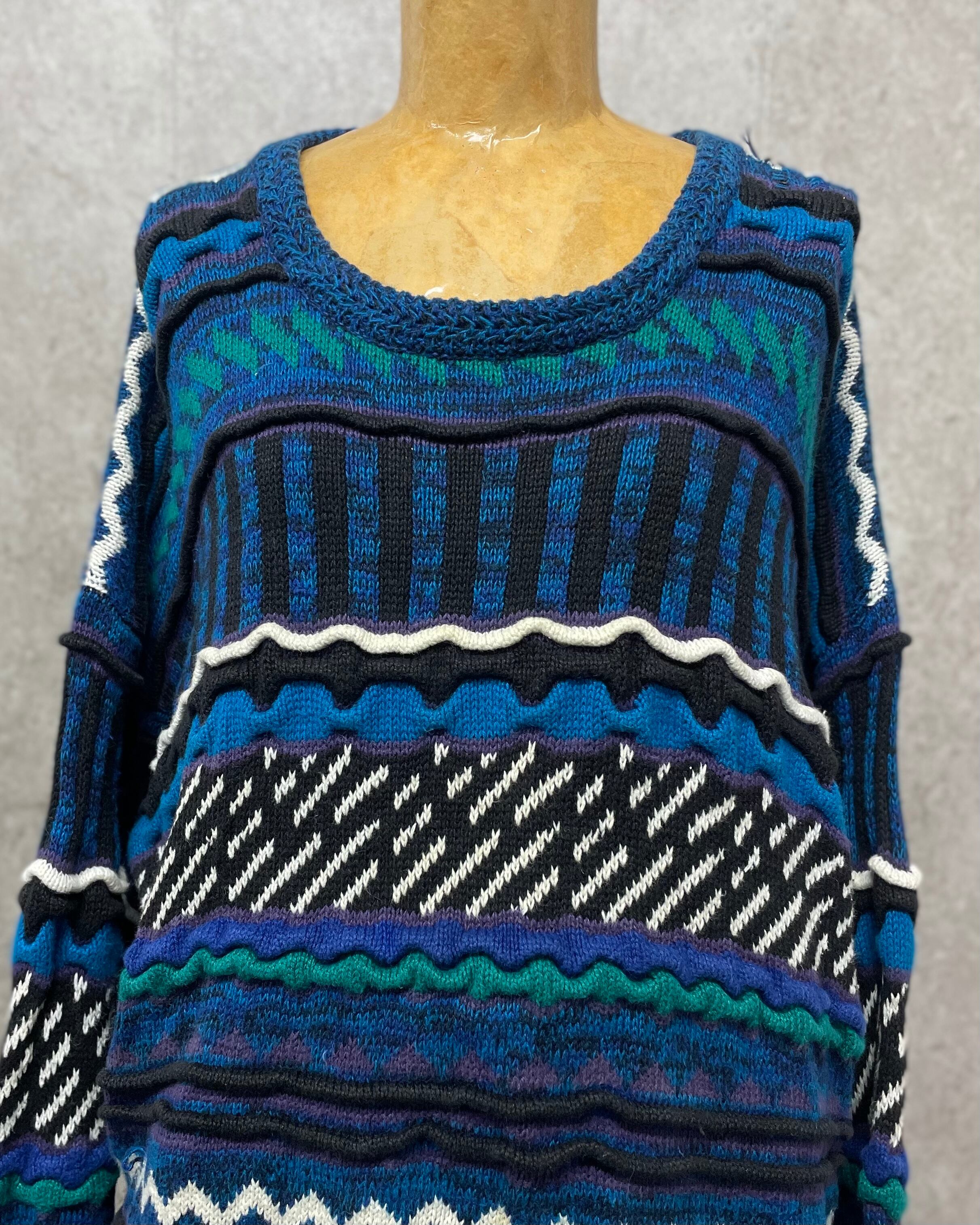 [used/vintage] 3D Cotton Knit Random Border Stripe "Blue"