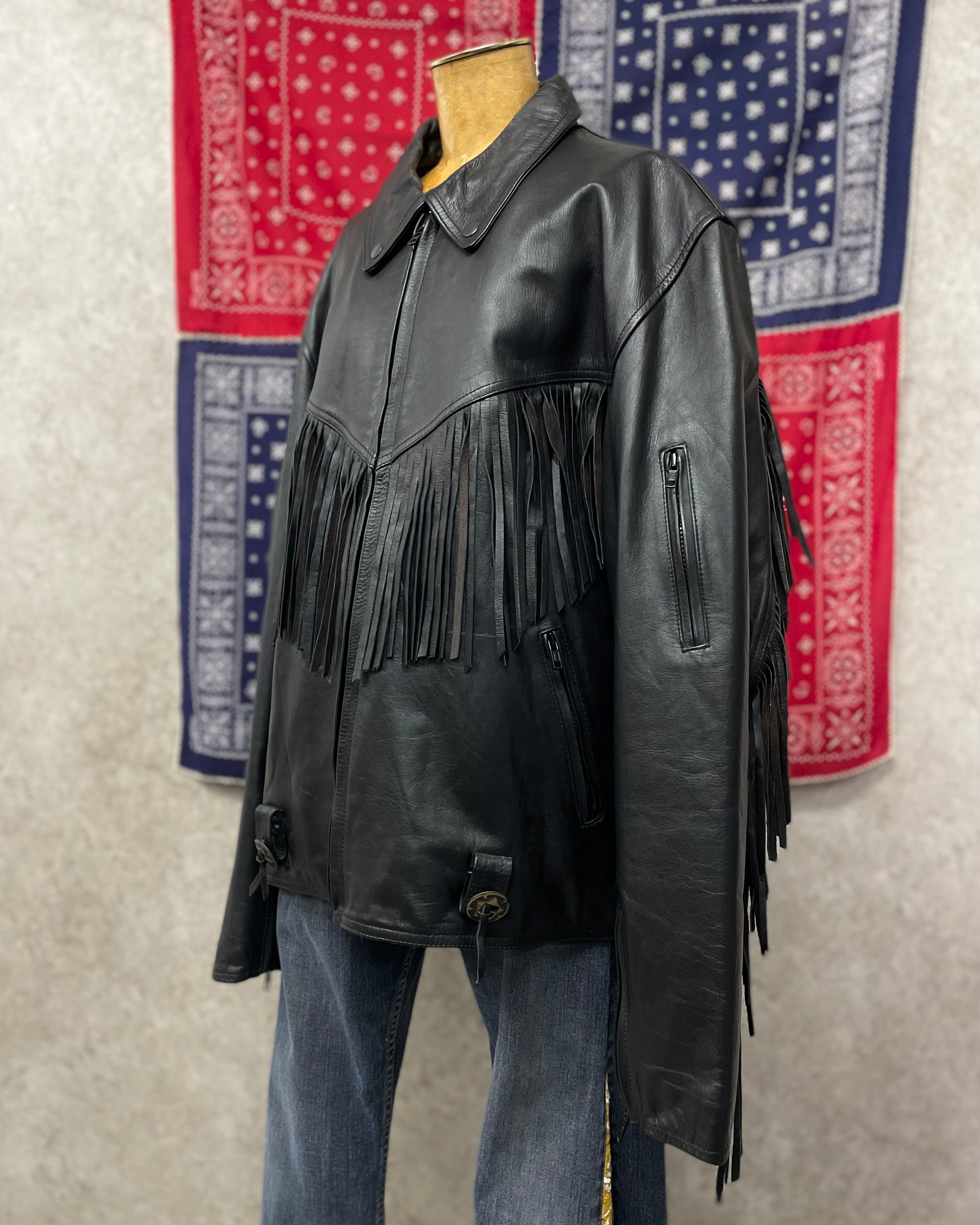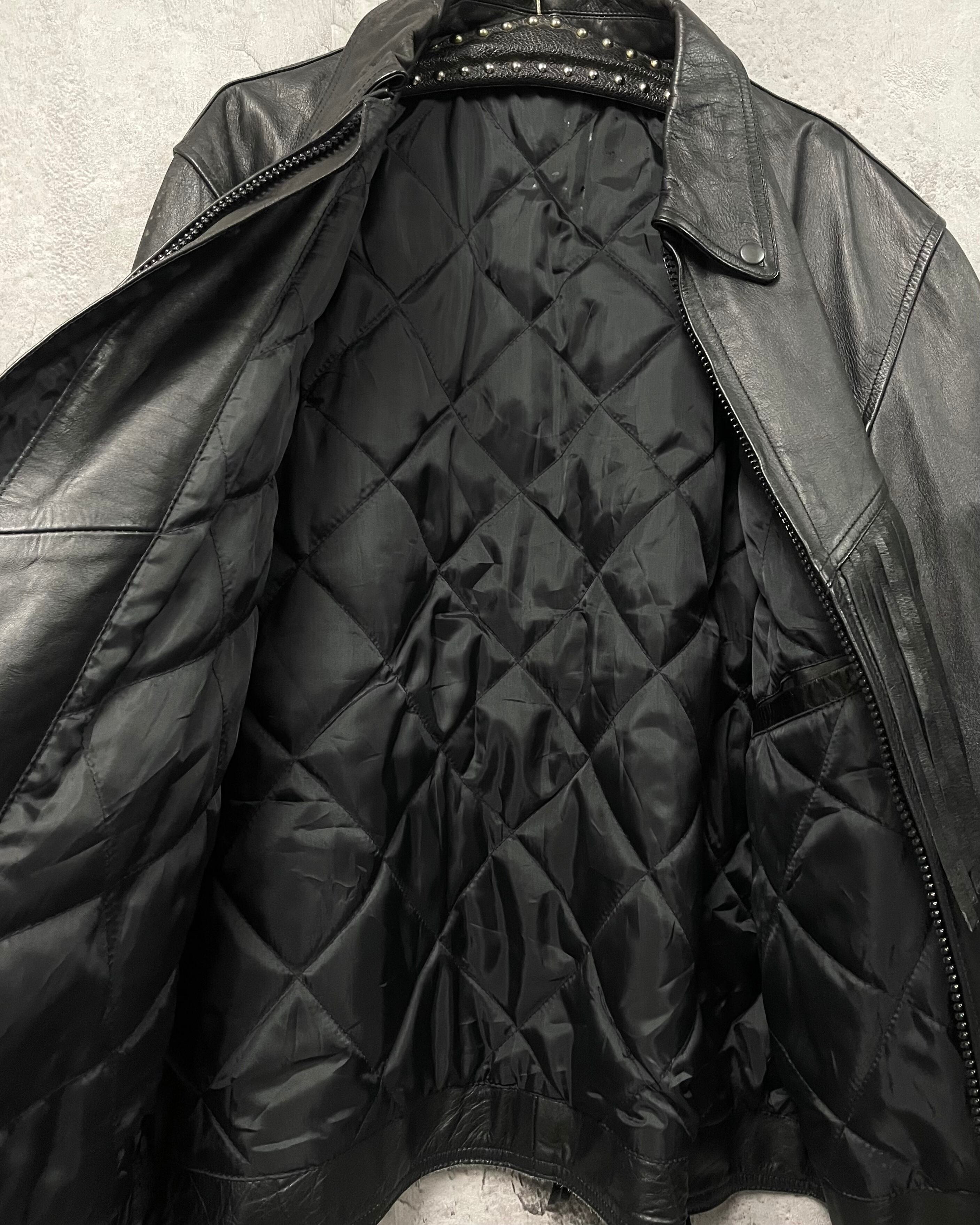 ヴィンテージ 本革 コンチョ フリンジ レザージャケット 中綿キルティング