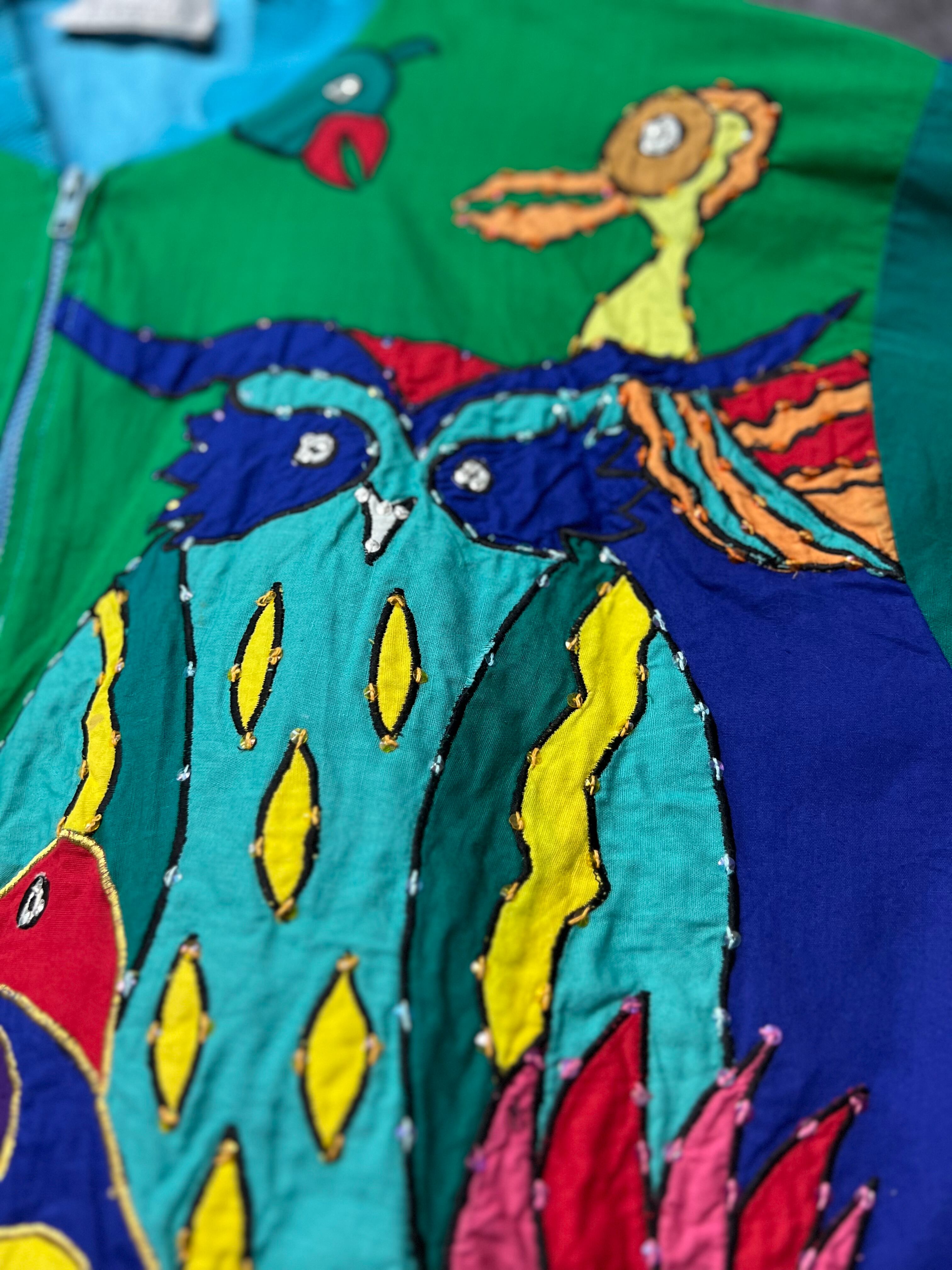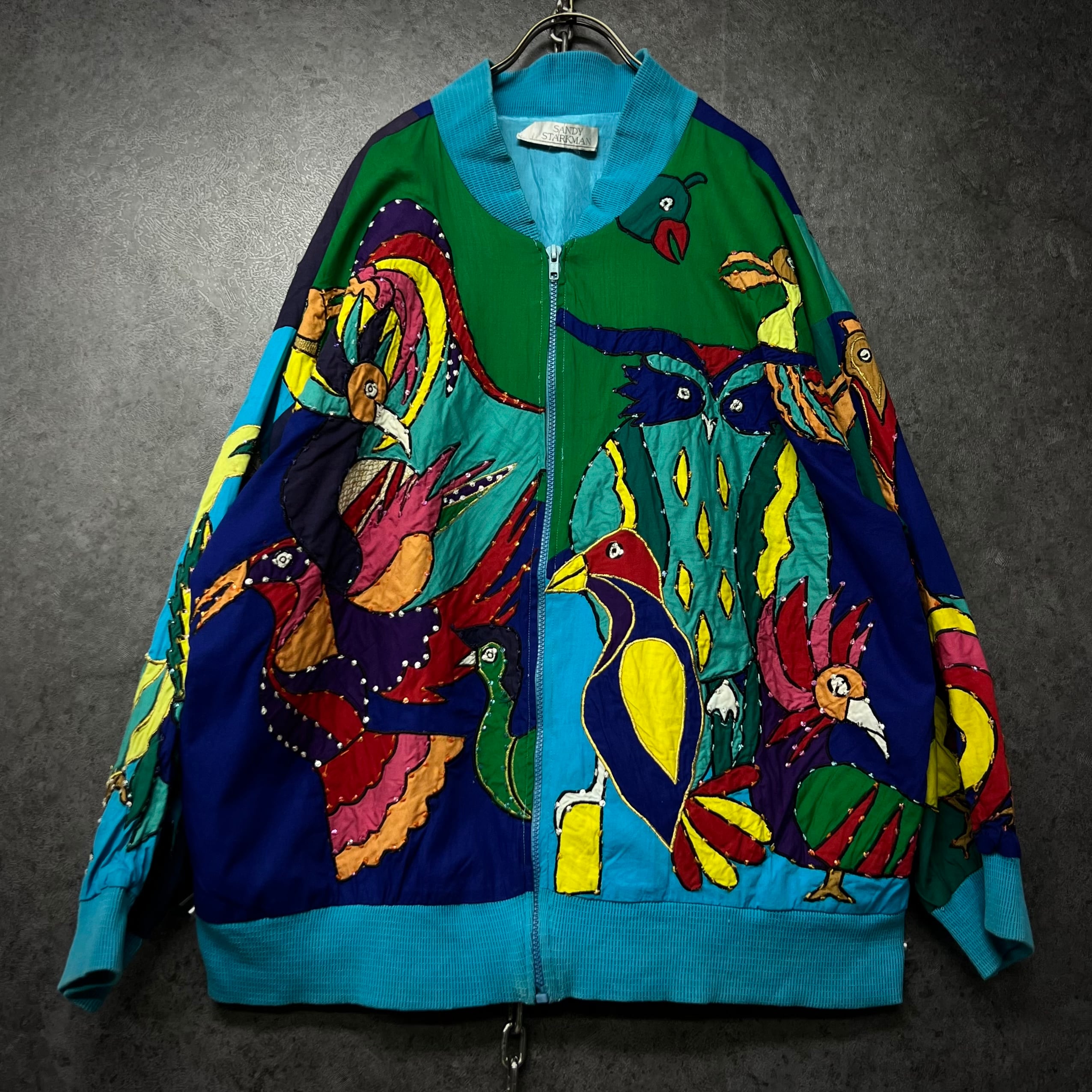 US古着 スパンコール 刺繍 アニマル柄 コットン ジャケット