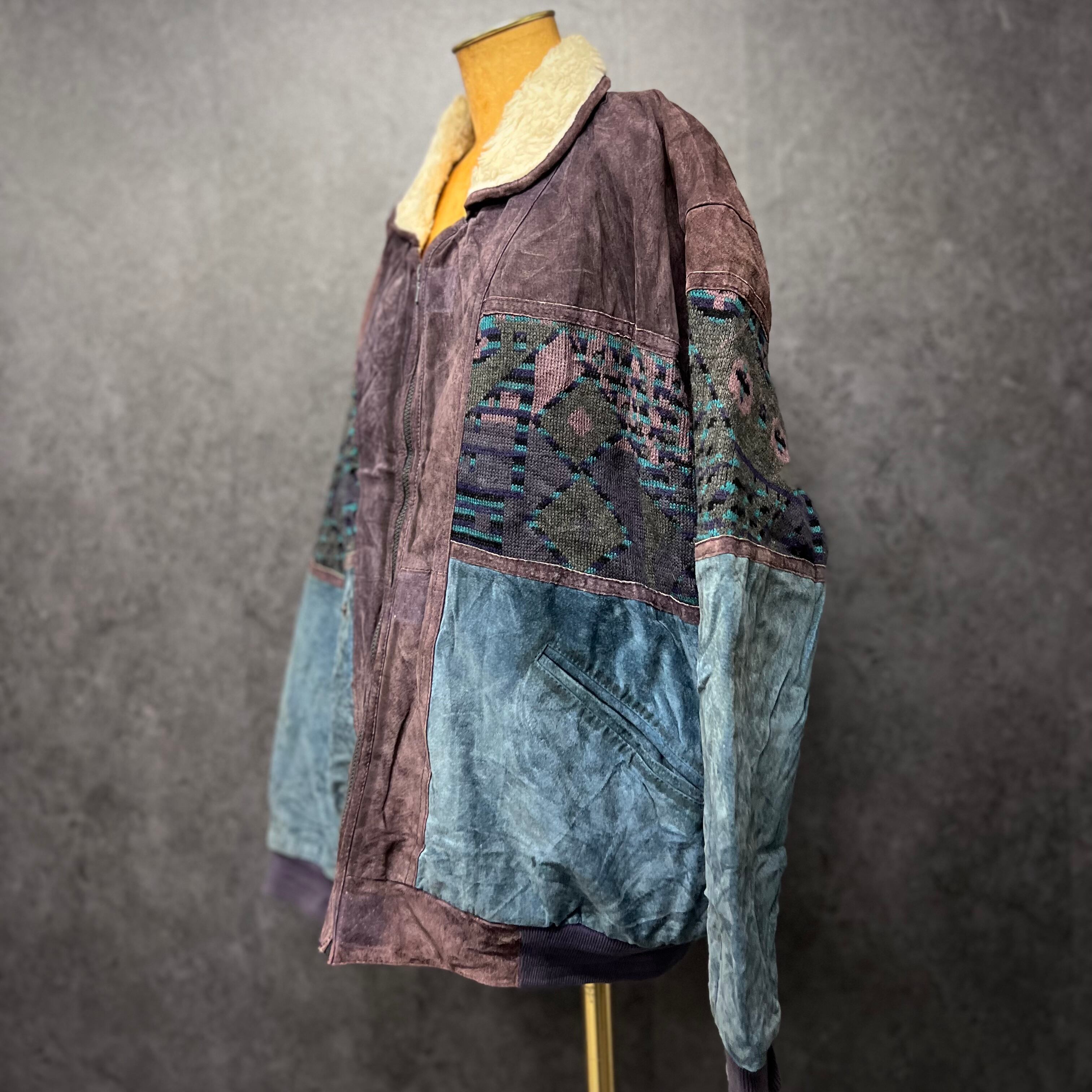 ヴィンテージ 裏ボア 民族 スエード 本革 レザー ジャケット