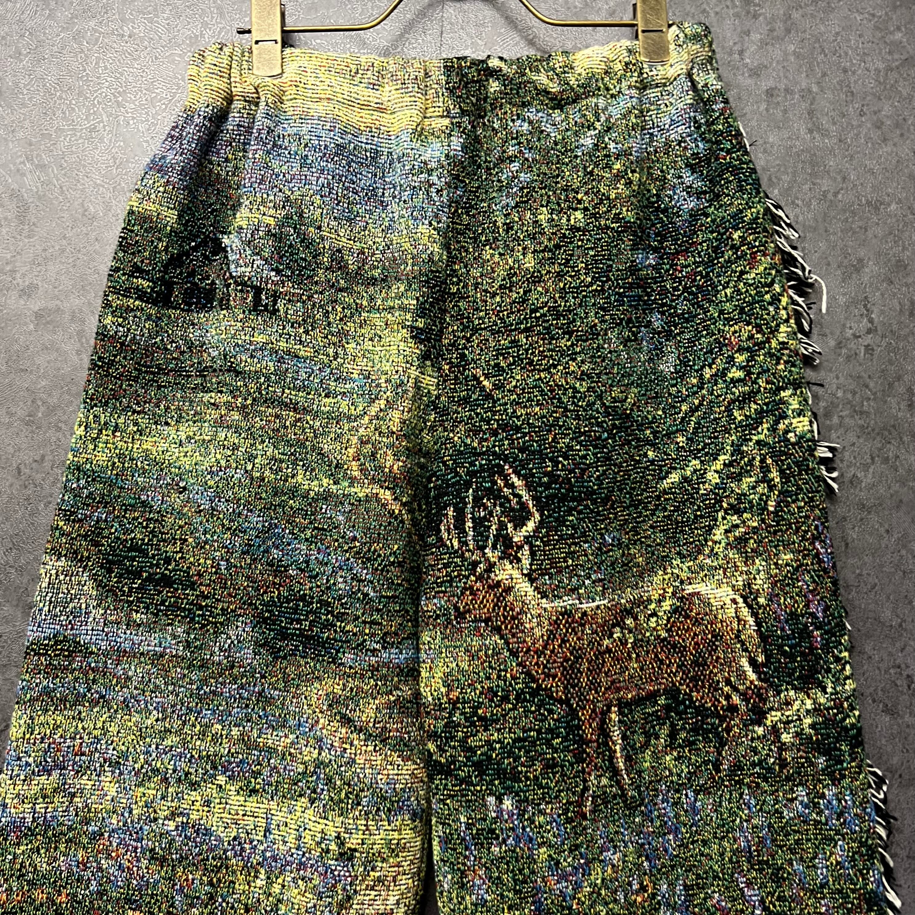 ヴィンテージ フリンジ ラグ/ブランケットパンツ "鹿 アニマル 総柄"