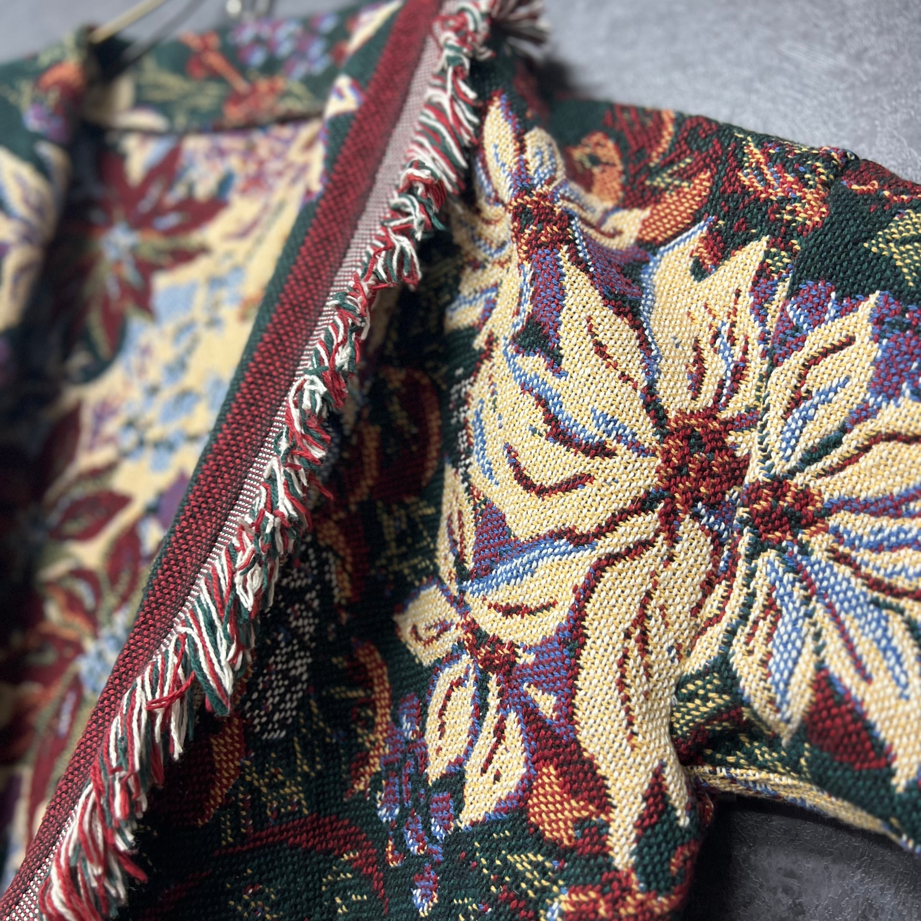 [original] vintage rug “flower pattern” Fringe Robe Jacket