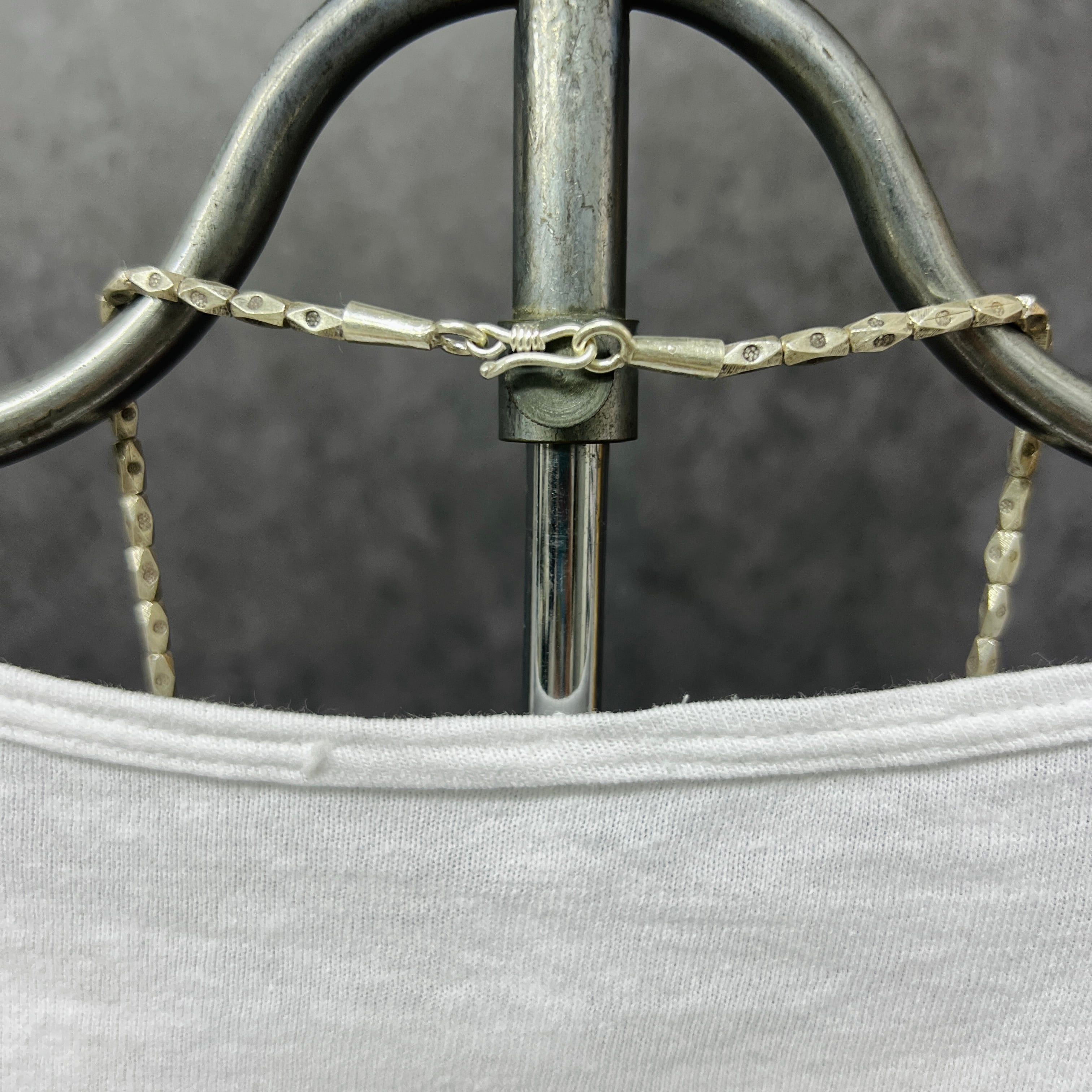 一つ一つ繊細な形に小さな型押しの入ったシルバーネックレス。