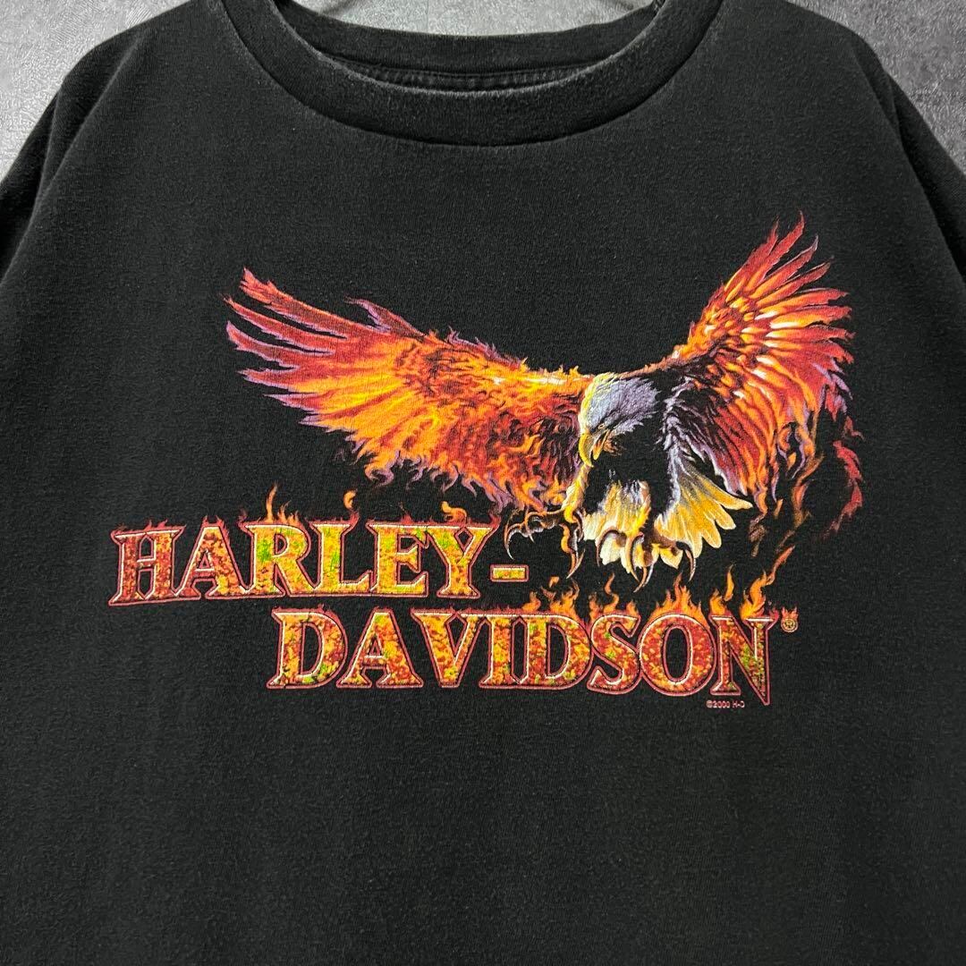 00s USA製 ヴィンテージ ハーレーダビッドソン ファイヤー イーグル プリント Tシャツ