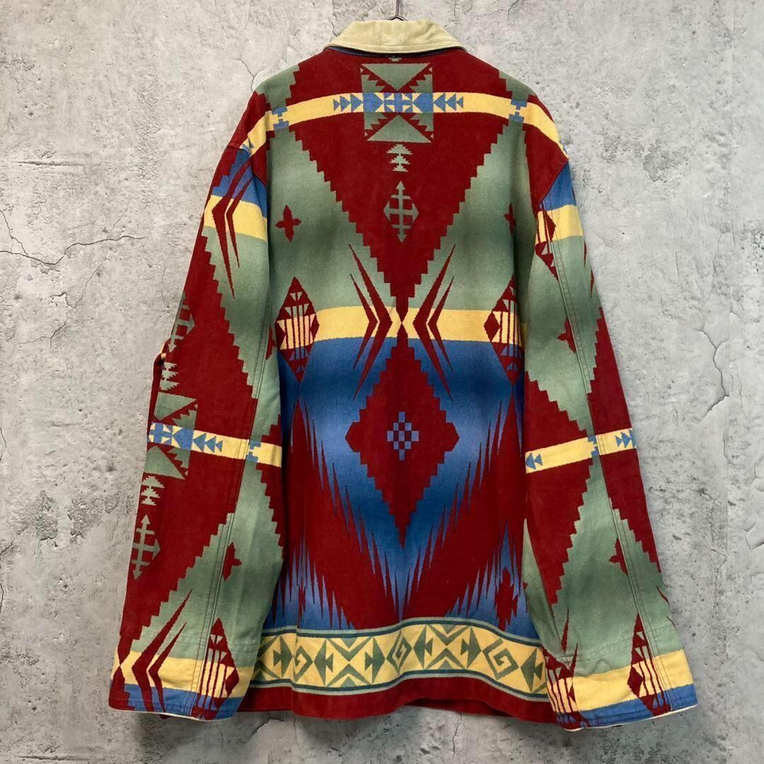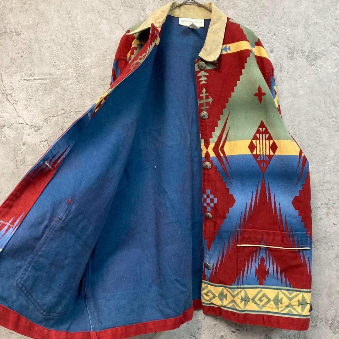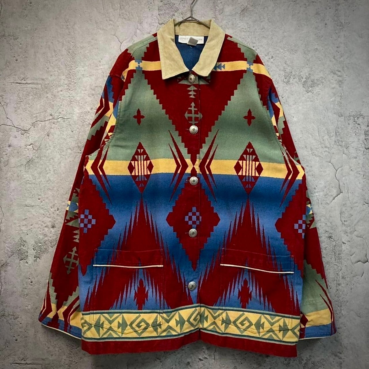 ヴィンテージ ネイティブ柄 スエードカラー コットンジャケット