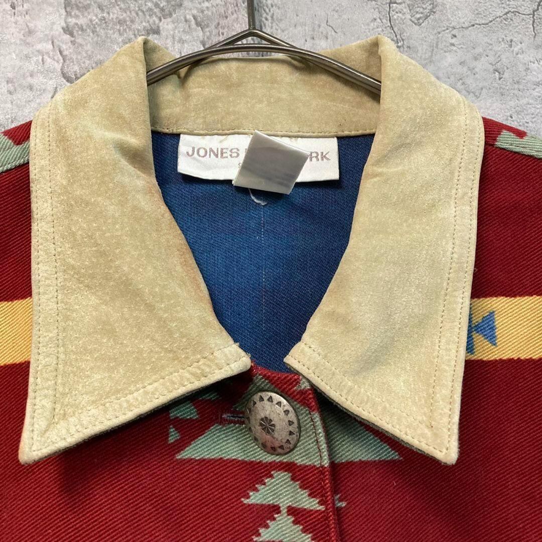 [used/vintage] navajo native pattern cotton jacket / suede collar / concho