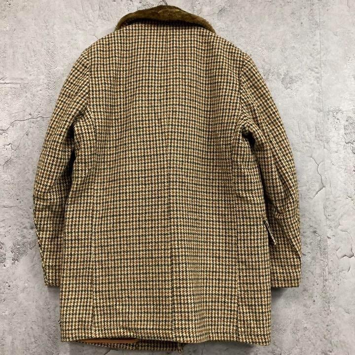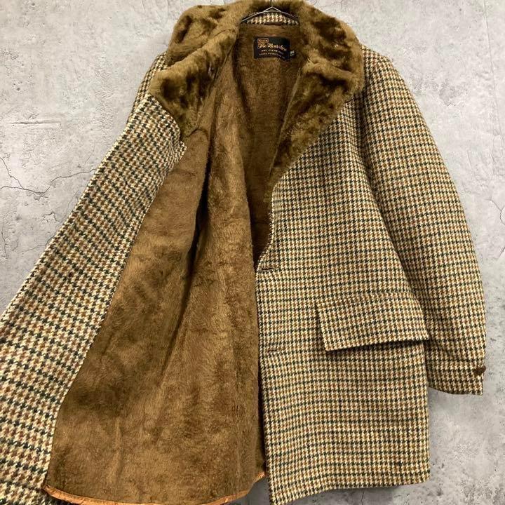 ヨーロッパ古着 千鳥格子 総柄 裏ボア ギャング コート ジャケット