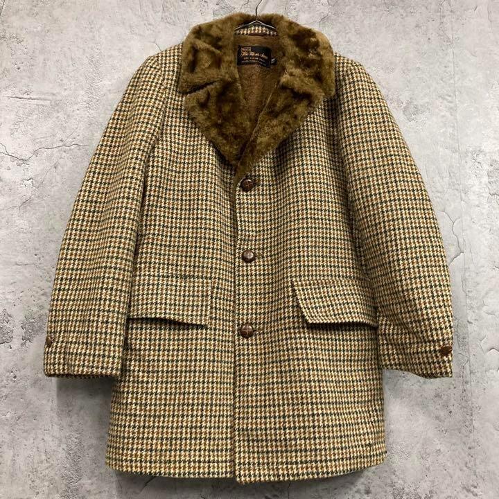 [ used / euro vintage ] houndstooth pattern "Gang coat" wool jacket coat boa lining